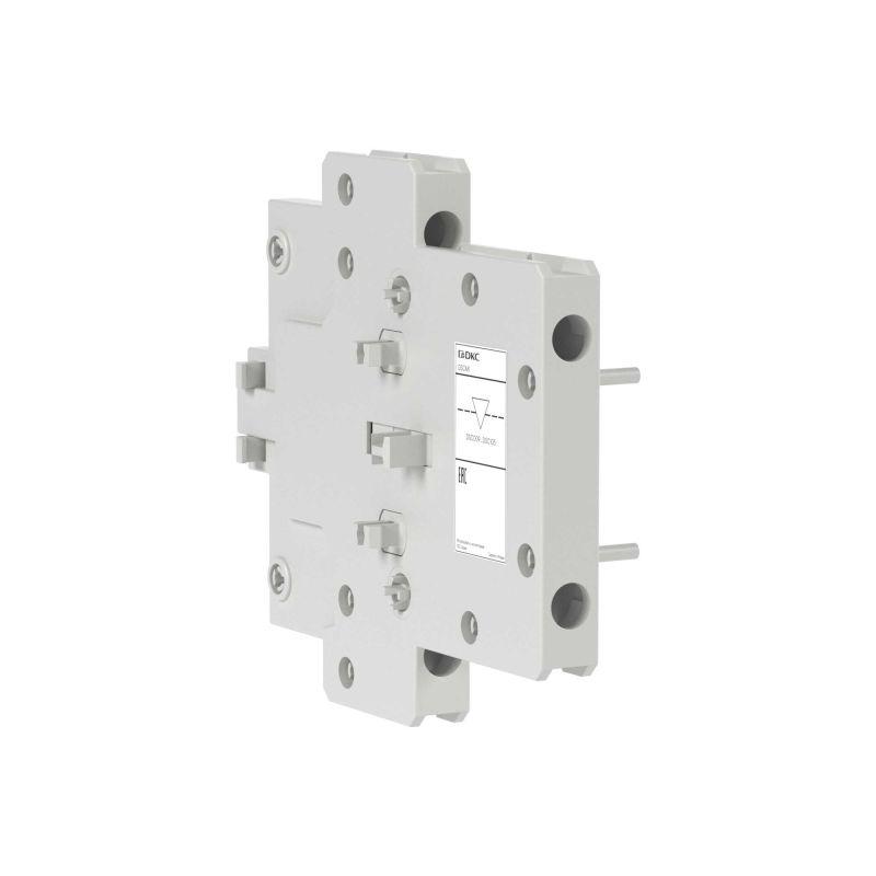Электромеханическая блокировка для реверсивных контакторов имеет те же функции, что и механическая блокировка, но также имеет два нормально замкнутых (НЗ) встроенных контакта для электрической блокировки, что устраняет необходимость в двух дополнительных НЗ контактах и механической блокировки. Это приводит к уменьшению ширины реверсивных контакторов и увеличению количества доступных мест для вспомогательных контактов.