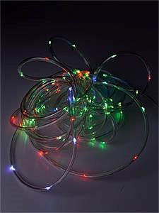 Гирлянда ДЮРАЛАЙТ KOC_GIR-B103. 10 метров буйства цвета! Нестандартная гирлянда - светящаяся гибкая трубка (100 светодиодов капелек на медной проволоке внутри). Меняйте режимы мигания и цветовую гамму с помощью пульта ДУ. Работает от 3 батареек АА (в комплект поставки не входят)