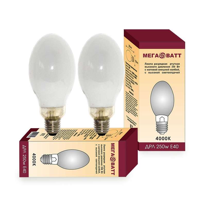 Лампа газоразрядная ртутная ДРЛ 250 E40 (20) МЕГАВАТТ 03014