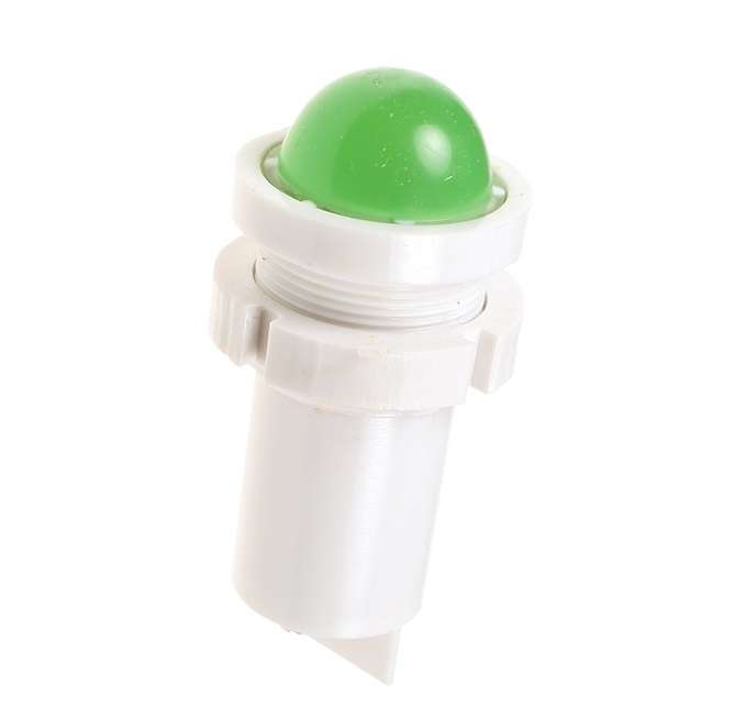 Представляет собой индикаторную лампу нормальной яркости (15 МКД), со встроенным светодиодом, высокой плоской, рассеивающей свет, окрашенной линзой зеленого цвета, корпусом и кольцом из пластика. IP54. Биполярная (переменный ток произвольной частоты и формы или постоянный ток любого направления). Является аналогами импортной светосигнальной