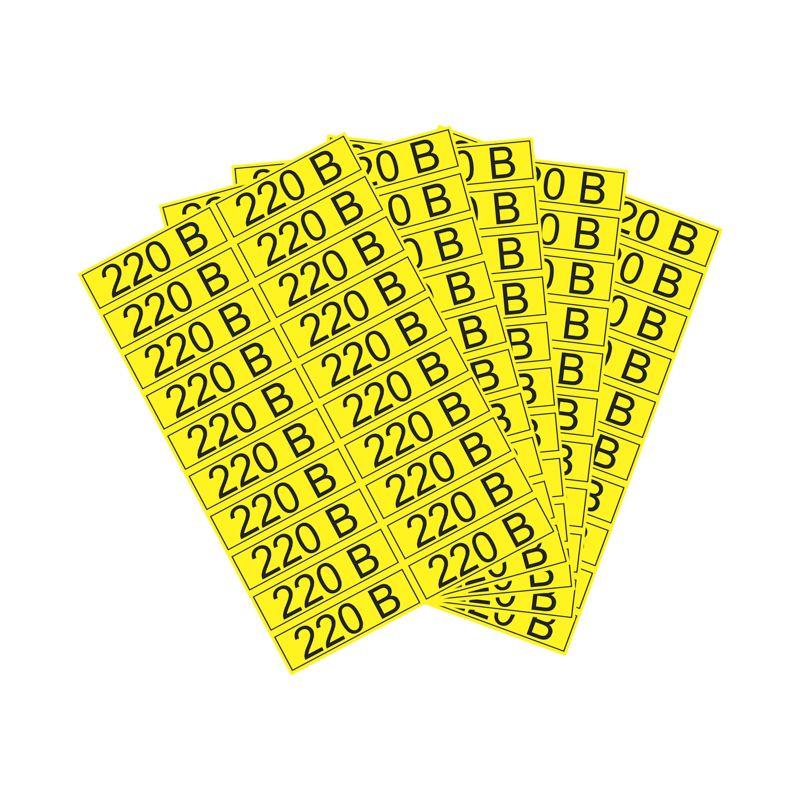 Знак электробезопасности (наклейка) указатель напряжения «220 В» — это информационный знак, который размещается для информирования о напряжении в электрической сети, около розеток и выключателей. Такие наклейки предназначены для предупреждения и информирования окружающих, а также для организации мест работы электромонтажных бригад, несут дополнительную информационную нагрузку.