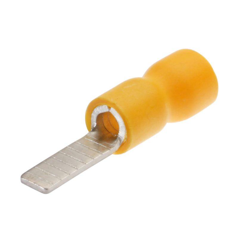 • Предназначены для оконцевания опрессовкой многопроволочных медных проводов и последующего крепежа наконечников к клеммам электрического оборудования • Мультидиапазонная альтернатива втулочным наконечникам • Всего 3 размера штифтовых наконечников заменяют 9 размеров втулочных • Материал изоляции: самозатухающий ПВХ. Класс V-0 по UL94 • Термостойкость изоляции: 75 °C • Материал наконечника: медь марки М1 • Покрытие наконечника: электролитическое лужение • Максимальное напряжение: 690 В • Особенности конструкции: • исполнение "Easy Entry": виниловая манжета отформована в виде раструба для облегчения монтажа многопроволочных медных жил • незаваренный стыковой шов на трубной контактной части наконечников • поперечные засечки на внутренней поверхности трубной части наконечников увеличивают механическую прочность соединения с жилой • Расширенные мультиразмерные диапазоны опрессовки • Опрессовка проводника поверх изолирующей манжеты