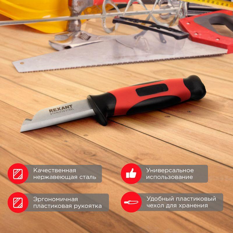 Нож монтажника с чехлом лезвие 67мм Rexant 12-4939