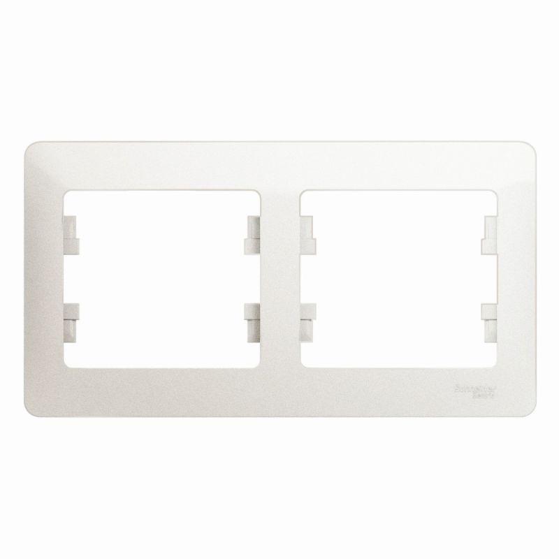 Рамка Glossa (цвет перламутр) двухместная. - Устанавливается в горизонтальном положении. - Выполнена из материала PС+ASA, стойкого к УФ-излучению и появлению царапин. - Позволяет гармонично вписать электроустановочное изделие в интерьер помещения.