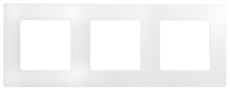 Трехместная рамка выполнена из поликарбоната высокого качеств, устойчивого к появлению царапин, белого цвета.