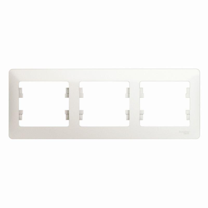 Рамка Glossa (цвет перламутр) трёхместная. - Устанавливается в горизонтальном положении. - Выполнена из материала PС+ASA, стойкого к УФ-излучению и появлению царапин. - Позволяет гармонично вписать электроустановочное изделие в интерьер помещения.