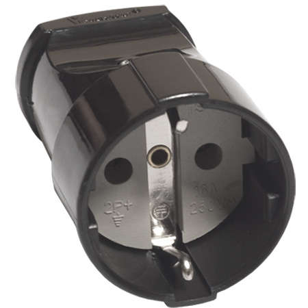 Штепсель с заземл. черн. 16А 250В (еврослот) UNIVersal А1020 в корпусе черного цвета изготовлен из АБС-пластика. Токоведущие элементы внутри корпусов зафиксированы в не поддерживающем горение пластике. Крепежные элементы контактных групп позволяют подключать провод с сечением от 0,5 кв.мм до 2,5 кв.мм.