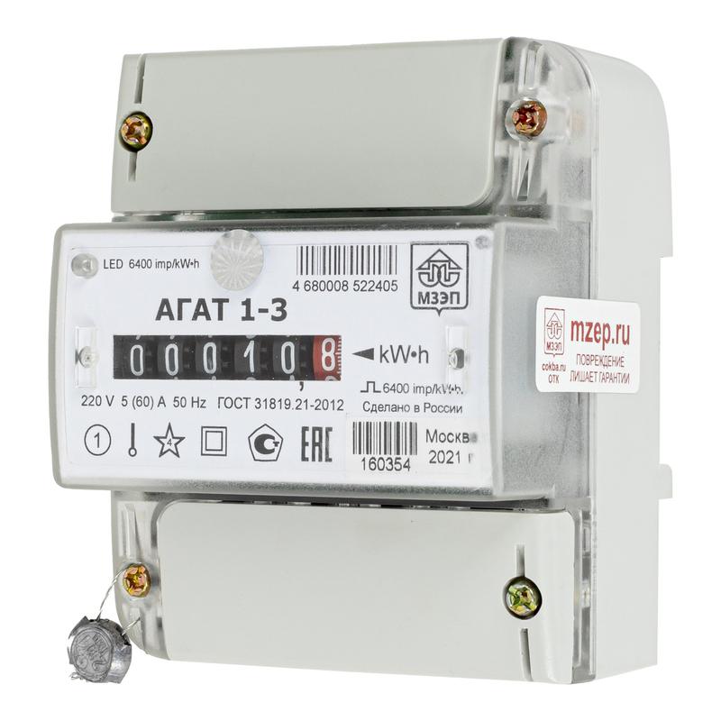 Счетчик АГАТ 1-3 1ф однотариф. МЗЭП ЕКБ468008522405