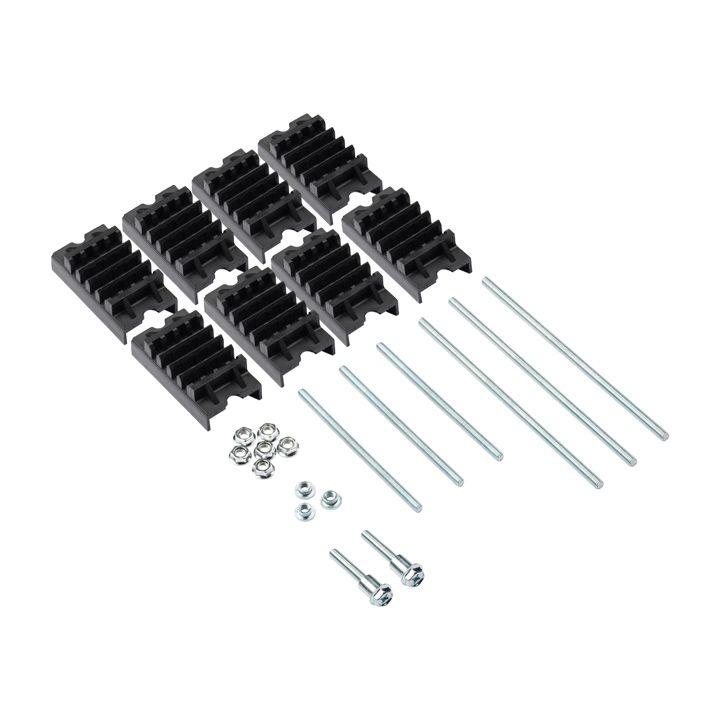 Система наборных шинодержателей позволяет создать требуемую конфигурацию шинодержателя в зависимости от требований проекта. Основанием служит прочный алюминиевый перфорированный профиль, на который насаживаются изоляторы для установки силовых шин ребром. Изоляторы имеют различное исполнение, обеспечивающее возможность установки шин толщиной 5 и 10 мм в количестве от двух до четырех на одну фазу. В составе комплектов идет необходимый крепеж: гайки, шпильки, винты.