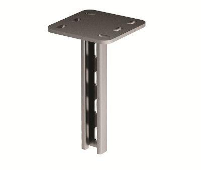 Подвес вертикальный одиночный BSP-21 41х21 мм применяется для монтажа консолей: ВВН-60, ВВН-70, BBD-21, BBP-21/41, одностороннего монтажа кабельных трасс; потолочного или напольного крепление. Подвес имеет С-образный профиль, толщина профиля 2,5 мм, толщина пластины 6 мм. В основании 6 отверстий под метизы М10. Длина подвеса - 500 мм.