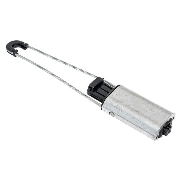 • НАЗНАЧЕНИЕ Зажимы анкерные клиновые применяются для крепления провода СИП на угловых, промежуточных и концевых опорах линий электропередачи. • ОБЛАСТЬ ПРИМЕНЕНИЯ Функцией зажима анкерного клинового является обеспечение натяжения самонесущего изолированного проводника на анкерных опорах. Зажимы используются под различное сечение проводника и в разных исполнениях имеют различное значение предельной нагрузки. • ПРИНЦИП ДЕЙСТВИЯ Зажим анкерный клиновой обеспечивает фиксацию проводника путем срабатывания простого призматического механизма, рабочие поверхности которого сходятся под острым углом. На опоре ЛЭП зажим фиксируется с помощью тросика. • ДОПОЛНИТЕЛЬНЫЕ ПРИНАДЛЕЖНОСТИ ИЛИ АКСЕССУАРЫ В стандартную комплектацию входит основное устройство.