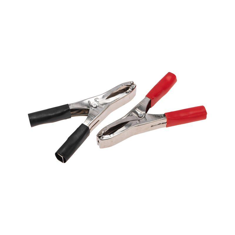 Зажим "крокодил" 50А 98мм REхANT представляет собой электромеханическое устройство, предназначенное для оперативного соединения или разъединения контакта проводов при выполнении измерительных работ или монтажа электрических и слаботочных сетей. Зажим получил свое название за схожесть с челюстями крокодила. Состоит он из двух фигурных деталей с «крокодильими» зубцами, скрепленных серединами специальным штифтом и способных поворачиваться на некоторый угол вокруг оси соединения. К одной из деталей монтируется контактный провод. Сжатие «челюстей» обеспечивается пружиной, вставленной с другой стороны штифта. Контактная часть изделия изготавливается из стали с никелированным покрытием. В целях безопасной эксплуатации зажима, ручки имеют изоляцию, изготовленную из ПВХ, что предохранит от поражения специалиста электрическим током. Чаще всего зажимы применяются парами черного и красного цвета (50/50). Основные характеристики: