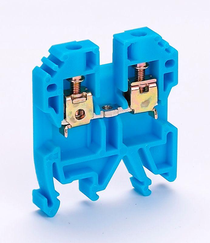 Зажим наборный серии ЗН-101 DEKraft ; номинальный ток - 35 А; сечение проводов от 1 до 4 кв.мм; цвет – синий; материал корпуса - полиамид; материал клемм и винтов – латунь; монтаж - защелкиванием на DIN-рейку; количество в упаковке – 50 шт. Клемма выполнена таким образом, что обеспечивает двойной обжим проводника. Это обеспечивается в том числе и за счет насечек на клеммах. Зажимы наборные синего цвета применяются для присоединения нулевого рабочего проводника.